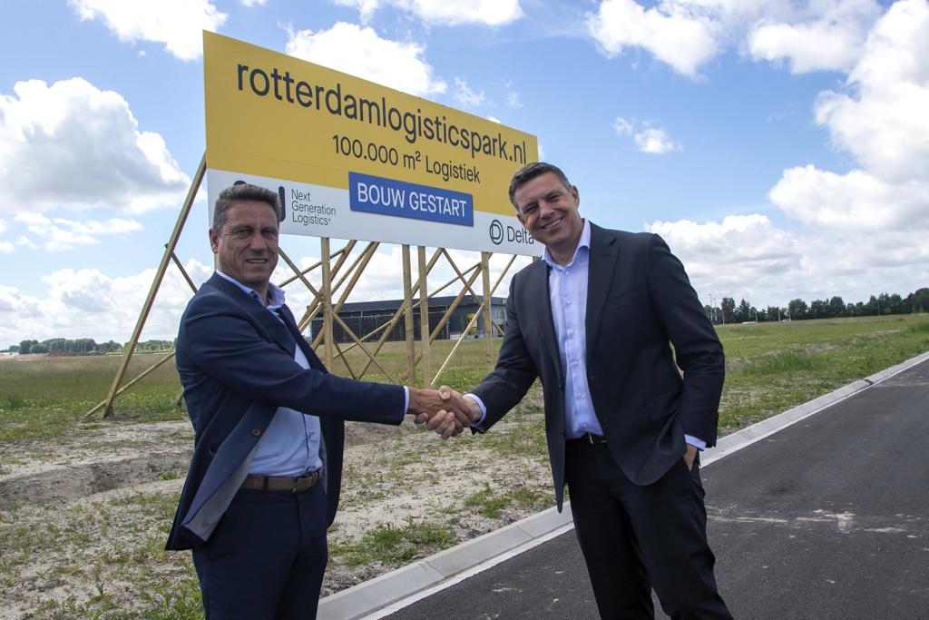 Wethouder Aart-Jan Spoon van Economische zaken en werkgelegenheid van de gemeente Hellevoetsluis heeft afgelopen maandag het bord onthuld waarop de komst van Rotterdam Logistics Park wordt aangekondigd. Daarmee is het startsein gegeven voor de bouw van de eerste twee bedrijfshallen van de in totaal 100.000m2 die delta daar in de komende jaren gaat bouwen.